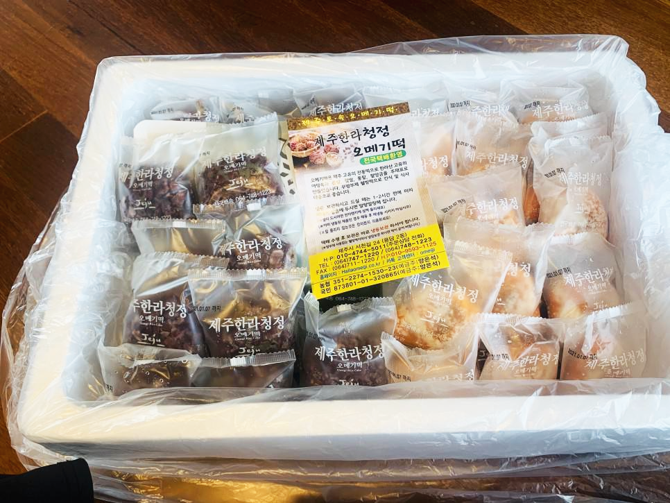 제주 한라청정에서 오메기 떡을 구매했어요.