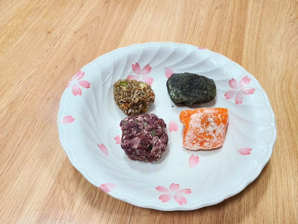 오메기떡, 견과류떡, 콩고물오쟁이, 흑임자떡 이렇게 4종류인데요